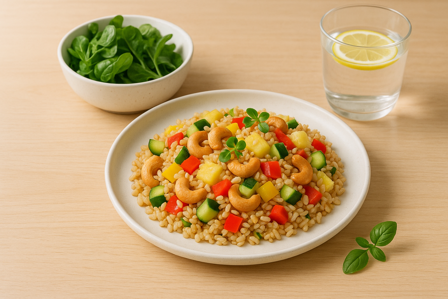多元健康饮食理念注重主副食组合。菠萝炒饭本身营养丰富,可适当加入毛豆、蘑菇、胡萝卜、虾仁,提升优质蛋白和矿物质含量。素食爱好者则可用鹰嘴豆、豆腐替代动物蛋白。搭配新鲜叶菜沙拉或者自制的无油酸奶水果杯,让整餐更为平衡。饮品可选降糖柠檬水或无糖绿茶,为肠胃减轻负担,多元轻食搭配让菠萝炒饭成为“主食+小菜”一体的高性价比快餐。